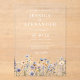 This Elegant Dusty Blue Wildflowers Clear Acrylic Wedding Invitation showcases delicate watercolor wildflowers in shades of dusty blue, purple and yellow on clear acrylic, complemented by contemporary typography in white. It is fully customisable with the couple's names and wedding details. The formal design and wording will add a touch of elegance to your wedding celebration.