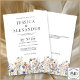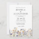 This Elegant Dusty Blue Wildflowers White Wedding Invitation showcases delicate watercolor wildflowers in shades of dusty blue, purple and yellow on a white background, complemented by contemporary typography in grey. It is fully customisable with the couple's names and wedding details. The formal design and wording will add a touch of elegance to your wedding celebration.