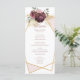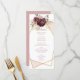 An elegant design featuring your menu details in dusty rose lettering on a crisp white background surrounded by a gold geometric frame adorned with a luscious cluster of blooms in pink and dusty rose with a sprinkle of gold glitter dust. By clicking the customise link, you can change the names and date. This is part of a classy wedding suite that can be fully personalised.
