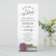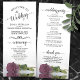 This beautiful wedding program features an elegant design with a single long stemmed dusty rose or mauve pink coloured rose lying on its side reflecting in water. The titles are written in fancy script calligraphy, and there is space for your ceremony and wedding party details, as well as a short thank you for your guests. Wonderful way to welcome your friends and family to your wedding celebration.