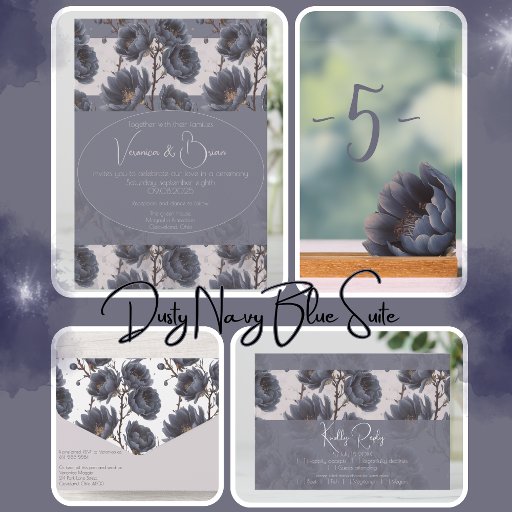 Our Dusty Navy Blue Collection is a blend of rustic charm and elegant romance. Here with our all-in-one wedding invitation. Designed for the bride who seeks something truly unique, this invitation features a dark blue floral motif intertwined with twigs in stunning dusty navy shades. The bride and groom’s names are elegantly showcased in a graceful script, complemented by a delicate, easy-to-read font for the rest of the text. This captivating design ensures your guests will be enchanted from the moment they receive it, setting the tone for an unforgettable celebration.