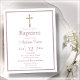 Celebrate your little one's special day with our elegant dusty pink baptism invitation. This affordable paper invitation features a beautiful dusty pink border and a stunning gold effect crucifix on a clean white background, perfect for any baby's baptism or christening.