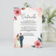 This elegant watercolor floral wedding enclosure card is perfect for a modern wedding. The romantic design features a sleek watercolor floral frame with a bride and groom illustration and black calligraphy on a white background.