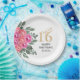 Elegant Dusty Pink Rose Greenery Gold Sweet 16 Paper Plate