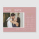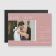 This save the date engagement announcement magnetic card features elegant calligraphy and simple sans serif typography font with a photo and calendar on a dusty pink background with faux gold lines, gold heart ring, and black/white text for a clean minimalist and modern look, which is a beautiful way to tell your guests to inform about your upcoming wedding. Announce to your family and friends you are getting married with this magnetic card and add a personal touch with a photo of you and your soon-to-be better half. The simplicity of this design adds a touch of elegance to your wedding save the date invitation cards. It works well with many wedding themes and definitely a great addition to your wedding. Just customise the names, location, wording and ring placement of the date in a few easy steps and personalise the magnetic card with your photo of the happy couple.
