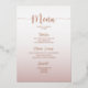 Elegant wedding menu template. Simple, with modern real foil calligraphy on a dusty pink/rose gold gradient. Easy to customise with your own unique menu.