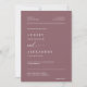 This elegant modern minimalist wedding invitation blends a clean serif font with beautiful script calligraphy for the words “and” and “reply,” giving it a timeless and sophisticated look on a dusty purple background. The design features a personalised photo of the couple and a QR code that directs guests to RSVP and access event details, making it a perfect combination of style and convenience.