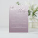 Our modern wedding details card features clean white text on a soft muted mauve background with a soft gradient, offering a refined and contemporary aesthetic. Designed for clarity and sophistication, it provides essential information in a clean, easy-to-read format. The timeless design complements various wedding themes, from classic to modern, making it a versatile addition to your stationery set. Fully customisable, this card allows you to personalise every detail effortlessly, ensuring a seamless and stylish way to keep your guests informed.