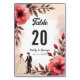 This elegant watercolor floral wedding table number is perfect for a modern wedding. The romantic design features an elegant watercolor floral frame with a bride and groom illustration and black calligraphy on a white background.