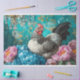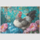 Add a touch of opulence to your projects with this luxurious decoupage tissue paper featuring a stately black-and-white hen poised gracefully among vibrant blue and pink peonies. The intricate crystal chandelier and turquoise floral backdrop evoke a sense of vintage grandeur, perfect for elevating your crafting endeavours. Ideal for scrapbooking, gift wrapping, or easter home decor, this tissue paper brings a blend of rustic elegance and timeless sophistication. Transform ordinary objects into extraordinary works of art with this unique design.