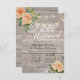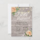 EAT Drink and Be Married Wedding Celebration / Bridal Shower Invitation Cards Templates.- Elegant Script with Peach White Roses Floral and String Lights on Rustic Wood Background.
