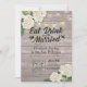 EAT Drink and Be Married Wedding Celebration / Bridal Shower Invitation Cards Templates - Elegant White lovely Watercolor Hydrangea Flowers and String Lights on Rustic Wood Background.