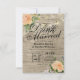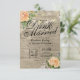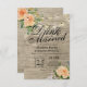 EAT Drink and Be Married Wedding Celebration / Bridal Shower Invitation Cards Templates.- Elegant Script with Peach White Roses Floral and String Lights on Rustic Wood Background.