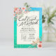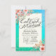 EAT Drink and Be Married Wedding Celebration / Bridal Shower Invitation Cards Templates - Elegant Lettering Script and Vintage Watercolor Pink Flowers on Turquoise Teal Blue Green and Faux Gold Foil Confetti Polka Dots Background.