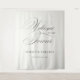 The welcome tapestry features a serene soft ecru coloured background, providing a warm and inviting canvas that enhances the overall aesthetic. This subtle hue offers a perfect contrast to the elegant black calligraphy. This choice of typography beautifully complements the modern clean layout, inviting your guests with understated grace.