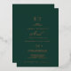 This sophisticated wedding invitation features a rich emerald green background adorned with exquisite gold foil detailing. The design showcases elegant hand-lettered typography, enhanced by delicate swirls and graceful flourishes, creating a timeless and romantic aesthetic—perfect for a classic and refined wedding.