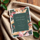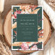 Create your own personalised wedding invitations featuring elegant floral design. Add your custom details of your special day in minimalist chic typography. This wedding invitation features boho chic fall floral of watercolor dahlia flowers and autumn botanical leaves on emerald green colour background.