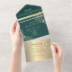 Elevate your wedding with our luxurious emerald green all-in-one wedding invitation, featuring a stunning floral design in elegant faux gold. The deep jewel-toned background creates a timeless and upscale look, perfectly suited for formal, bohemian, or modern wedding themes. Delicate vintage script typography adds a touch of romance and sophistication, making this invitation a true reflection of your love story.