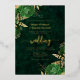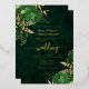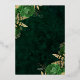 This elegant wedding invitation features blue floral bouquets set off with gold faux foil greenery in two corners, on a background image of emerald green watercolor agate. The customisable text combines real gold foil serif, italic and handwriting fonts. The reverse side features a matching emerald green and gold floral and agate design.