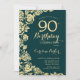 Elegant Emerald Green Gold Roses 90th Birthday Invitation