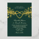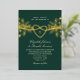Elegant, deco-art, vintage emerald green wedding invitation with monogram, real gold foil rope heart , unique luxury gilded floral lace and simple calligraphy.