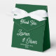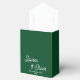 Make a dazzling impression on your wedding guests with these elegant emerald green script minimalist wedding favour boxes, personalised with your names and wedding date.