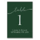 Elegant Emerald Green Script Wedding Table Number