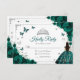 Elegant Emerald Green Silver Quinceanera Reply RSVP Card
