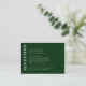 Minimal Emerald Green Modern Wedding Reception Enclosure Card