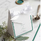 Looking for unique and memorable wedding favours? Look no further! Our charming emerald green favour boxes with a white ribbon are the perfect way to show your appreciation to your loved ones. The minimalist design allows you to personalise them with your initials or a special message, creating a touch of elegance. These sturdy boxes are ideal for holding small treats or gifts. They are sure to be a treasured keepsake from your unforgettable day.