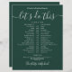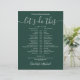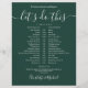 This simple elegant emerald green wedding schedule-timeline can be personalised with your wedding details in modern white lettering. Designed by Thisisnotme©