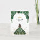 Show your gratitude in royal style with this emerald green quinceañera thank you card. Featuring a glamourous ball gown, gold crown, sparkling confetti, and lush green florals, it’s the perfect way to thank friends and family for celebrating your milestone. Customise with your name and date for a truly personal keepsake.