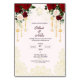 A beautifully designed engagement invitation card featuring a floral border of red and white roses, with a small Ganesha illustration at the top. The card announces the engagement of Hitesh and Neha, set to take place on Sunday, March 7th, 2030, at 11 AM at "123 Anywhere St., Any City, ST 12345." The invitation includes a request to RSVP before February 15th and provides a contact number. The design also incorporates traditional Indian motifs like hanging decorations and a mandala-inspired border at the bottom
