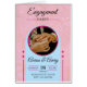 This stylish invitation showcases a soft pink background with subtle decorative accents and a circular photo frame, allowing you to personalize the card with your own engagement photo. The balanced layout and refined typography create a sophisticated look that is both romantic and contemporary.