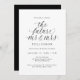 Celebrate your exciting news with these elegant engagement party invitations featuring “the future mr & mrs” in a modern calligraphy script. The black and white design is minimal, stylish, and perfect for a chic wedding celebration. Personalized with your details, these simple script invitations blend modern typography with classic elegance for a timeless announcement. Keywords: engagement party invitations, elegant, modern, black wedding script, minimal, simple script, calligraphy, typography, black and white, stylis