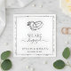 Set within a sophisticated square frame and a delicate botanical floral border, the layout features the phrase "WE ARE Engaged" in a stunning combination of classic serif and flowing script typography. Below the rings, you can easily personalize the napkin with your names and the date of your engagement. The crisp black-on-white aesthetic ensures these napkins will complement any party theme, from a modern cocktail hour to an intimate garden brunch.
