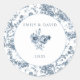 Elegant Engraved French Blue Floral Toile Classic Round Sticker