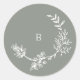 Elegant Envelope Sage Green Floral Monogram Wreath Classic Round Sticker