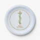 Elegant Eucalyptus and Cross Blue First Communion Paper Plate