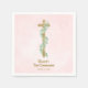 Elegant Eucalyptus and Cross Pink First Communion Napkin