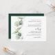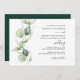 Eucalyptus Greenery Bridal Shower Script Invitation template you can easily edit for your wedding and it is perfect for a chic elegant wedding. Featuring eucalyptus foliage and modern typography on white background. On the reverse side is a plain emerald green background with a boho feel