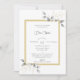 Eucalyptus and myrtle leaves, hand-drawn in classic graphite pencil and layered, some in gold (digitally), make for a modern, sophisticated, elegant and chic bridal shower invitation template that has a modern take on a traditional floral wedding frame. The texture of the black pencil shows through on the white paper, giving it a sense of effortless elegance. The frame is also an updated version of a classic, giving the design structure but keeping a sense of modern freshness. It features a modern calligraphy script for the name of the bride. A timeless design for a winter, spring, summer or fall wedding but also a lovely choice for a winter or fall bridal shower, with its neutral grey and gold.