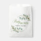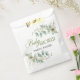 Simple, yet elegant baby shower favour bags feature green and gold eucalyptus leaves with a line of easy to update text.