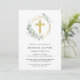 Elegant Eucalyptus Gold Cross Watercolor Baptism Invitation