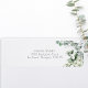 This unique botanical design features a curving branch of elegant watercolor eucalyptus leaves with artistic silver outlined leaves and white wildflowers.