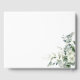 This unique botanical design features a curving branch of elegant watercolor eucalyptus leaves with artistic silver outlined leaves and white wildflowers.
