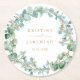 Elegant Eucalyptus Greenery Wreath Gold Wedding Round Paper Coaster