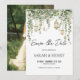 This save the date card features softly glowing lanterns, cascading eucalyptus greenery, and delicate botanical details that create a romantic garden atmosphere for your celebration. The gentle sage palette and natural foliage accents offer a warm and inviting introduction to your wedding, giving guests a beautifully coordinated preview of the event. You can personalize every detail, including adding your own photo to the back for a memorable touch. It pairs perfectly with the matching pieces in the full stationery suite.