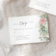 Beautiful wedding response cards featuring pink floral watercolor eucalyptus and gold leaves. Perfect choice for spring and summer weddings.