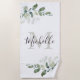 Elegant Eucalyptus Monogram Script Name Beach Towel